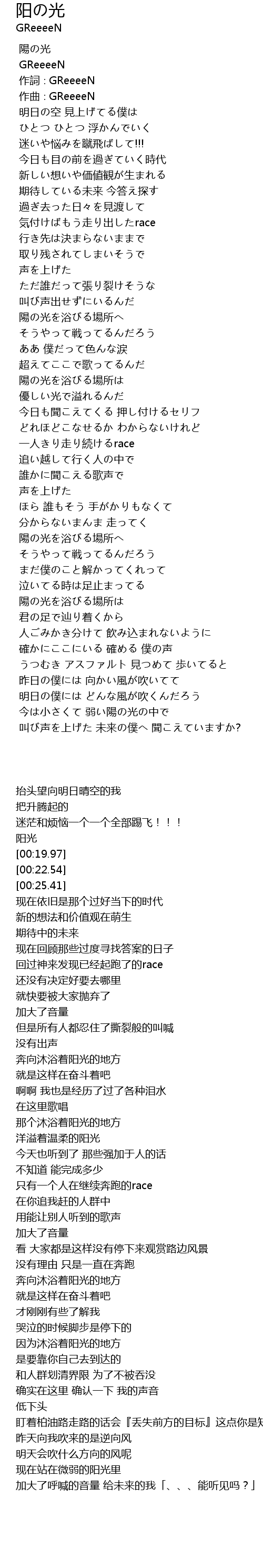 | [03:34.66] | jīn xiǎo ruò yáng guāng zhōng |