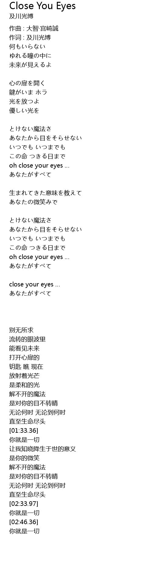 | 歌曲 | Close You Eyes |