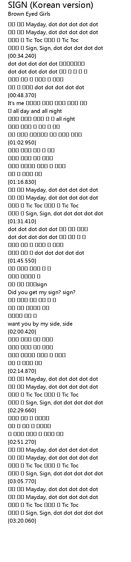 | [03:16.390] | 들리니 내 Sign, Sign, dot dot dot dot dot |