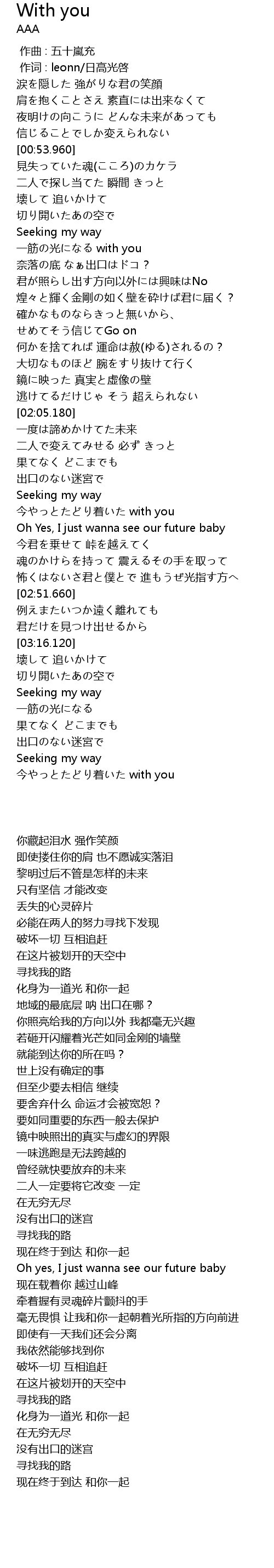 | [02:32.340] | 今やっとたどり着いた with you |