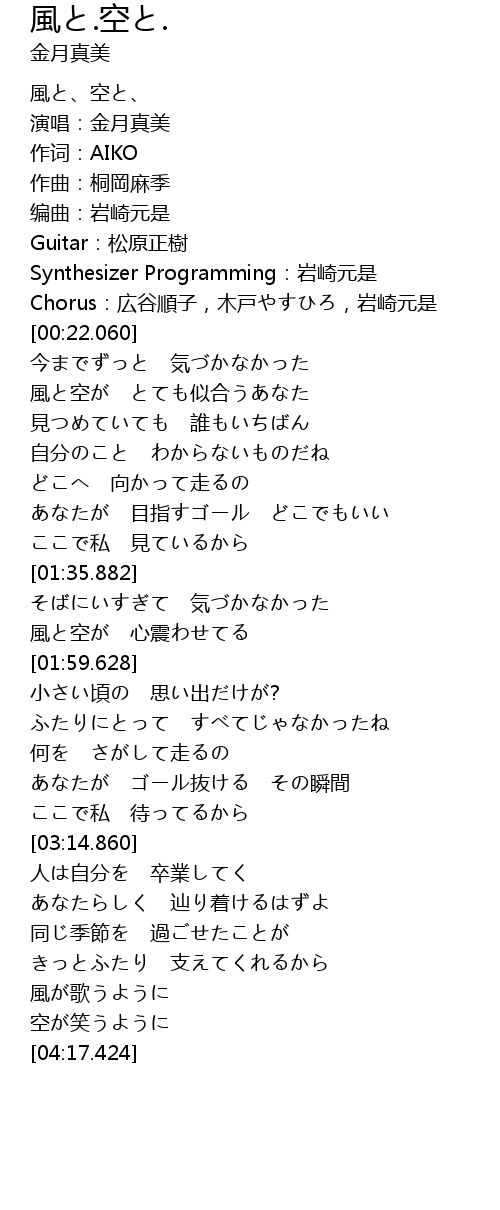 | [03:51.980] | きっとふたり 支えてくれるから |