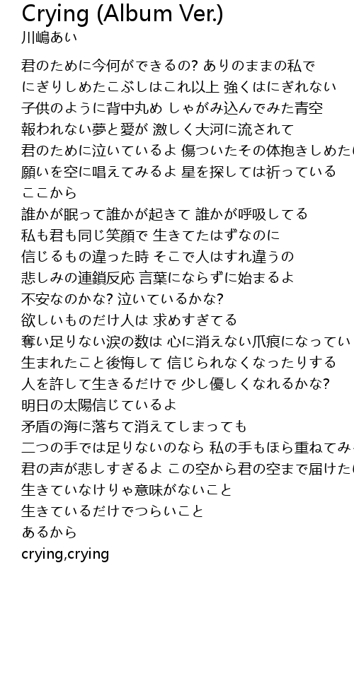 | 君のために泣いているよ 傷ついたその体抱きしめたい | |