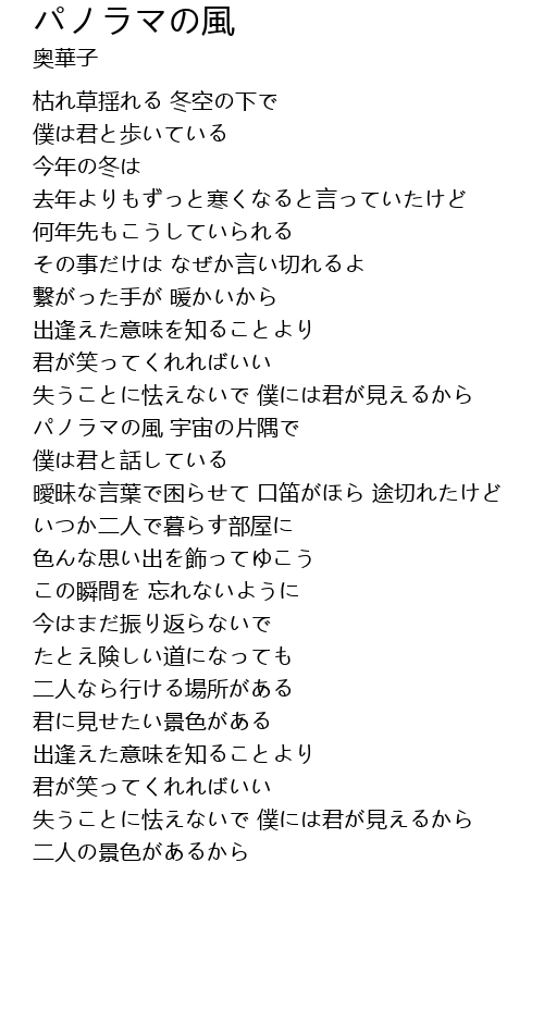 | 歌曲 | パノラマの風 |