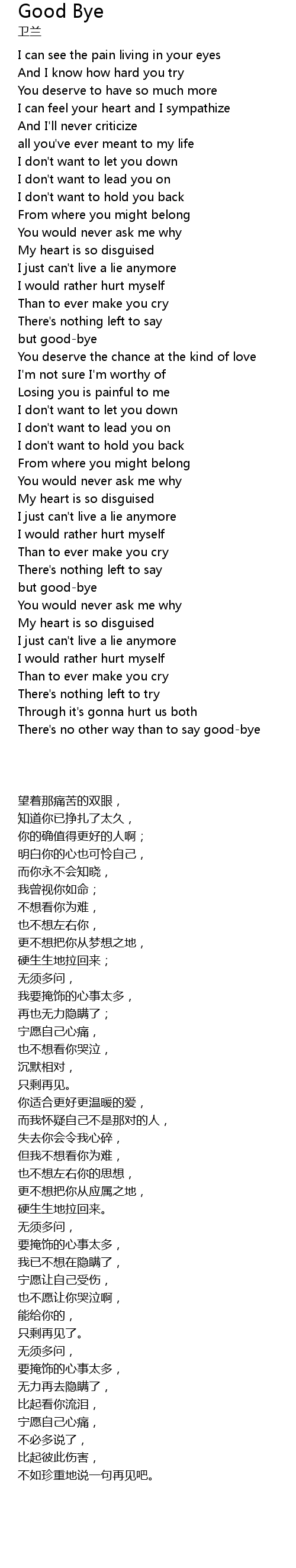 There's no other way than to say good-bye |