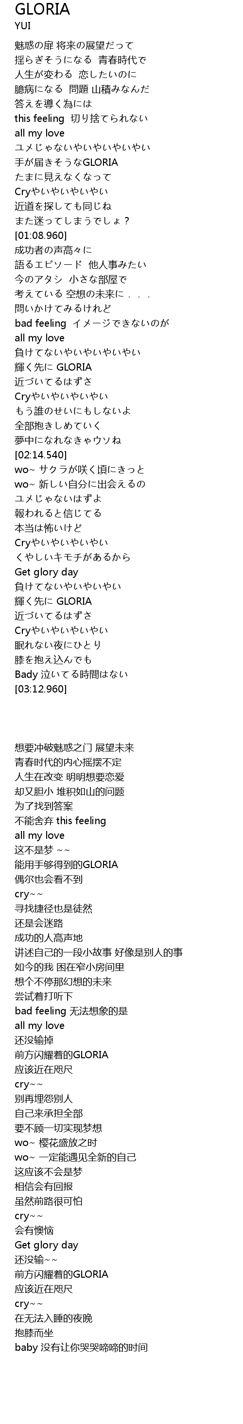 | [01:53.450] | 前方闪耀着的GLORIA |
