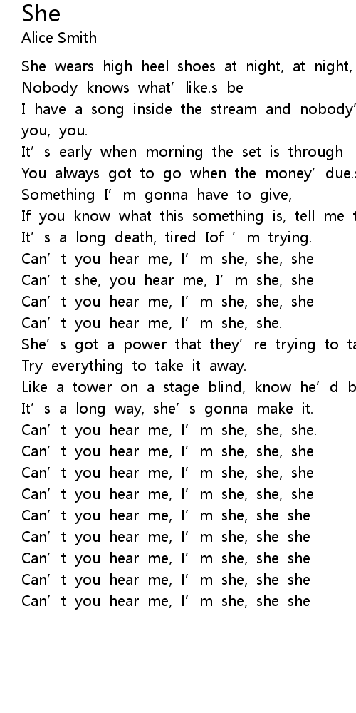 | Can' t you hear me, I' m she, she she |