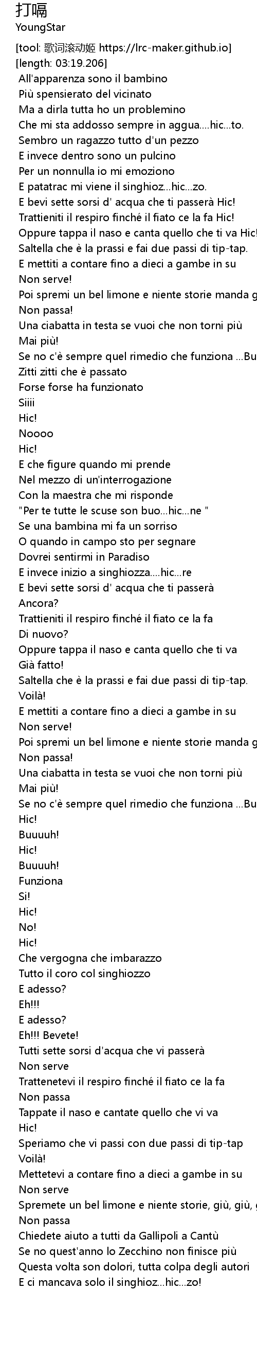 | [01:45.393] | E invece inizio a singhiozza.... hic... re |
