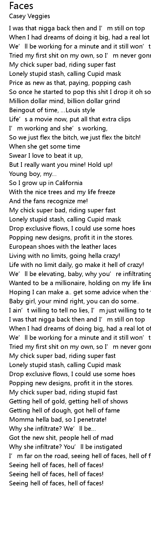 | I' m far on the road, seeing hell of faces, hell of faces | |