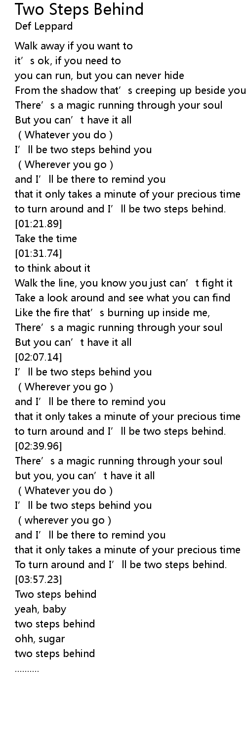 | [04:03.22] | two steps behind |