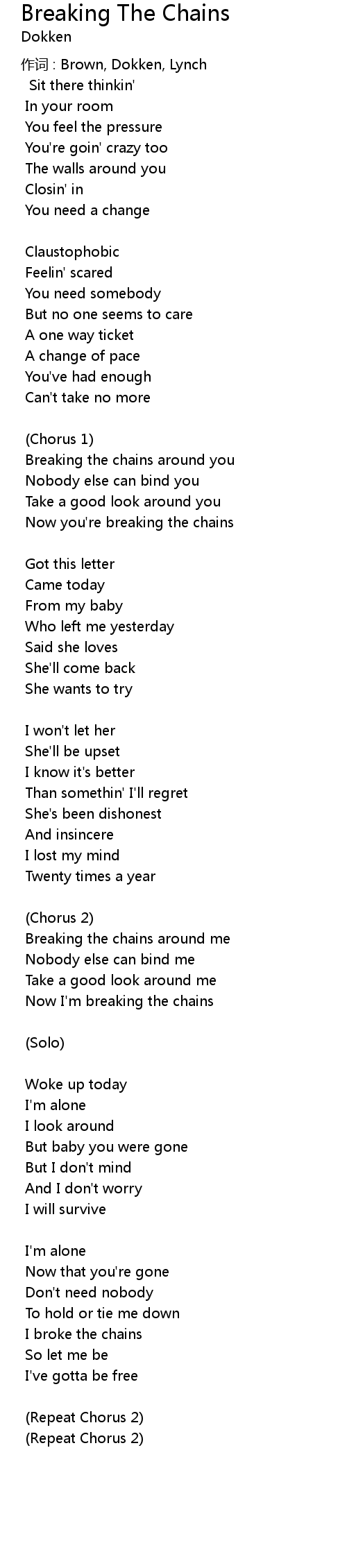 | 作词 : Brown, Dokken, Lynch | |