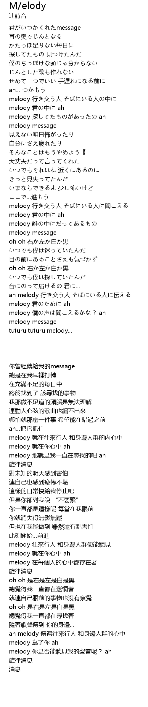 | [02:52.850] | ah melody 行き交う人 そばにいる人に伝える |