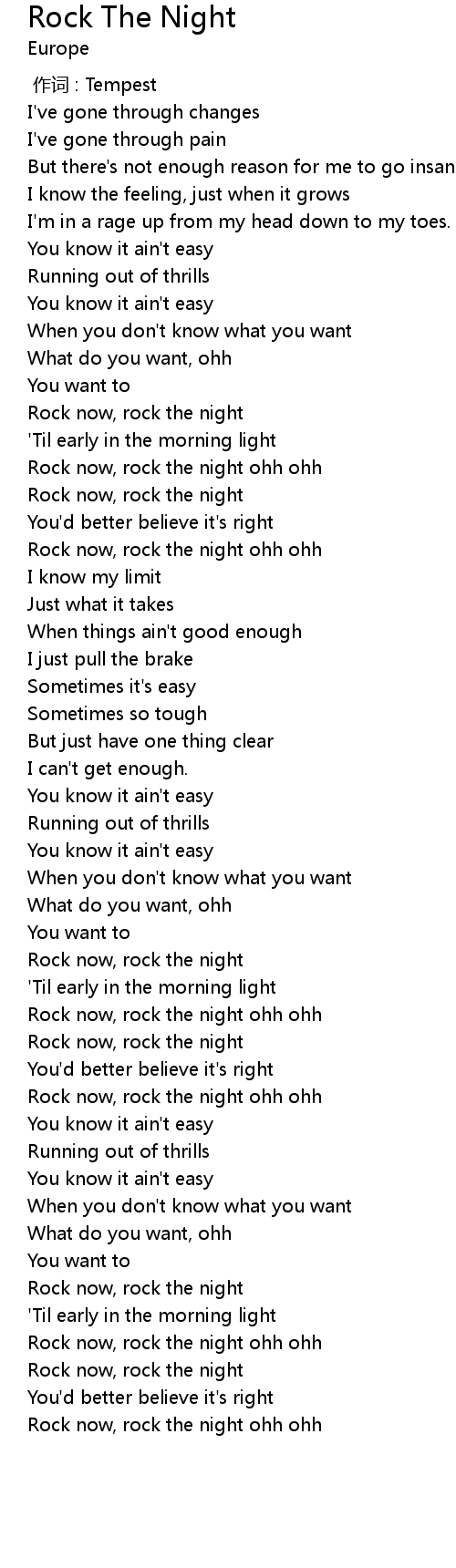 | [00:58.83] | Rock now, rock the night ohh ohh |