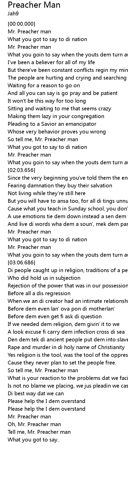 | [00:58.093] | Mr. Preacher man |