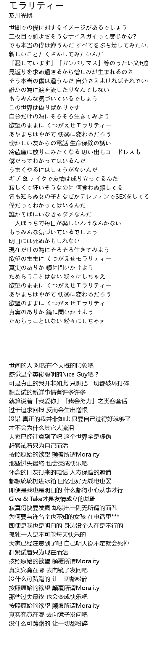 | [01:53.23] | 按照原始的欲望 颠覆所谓Morality |