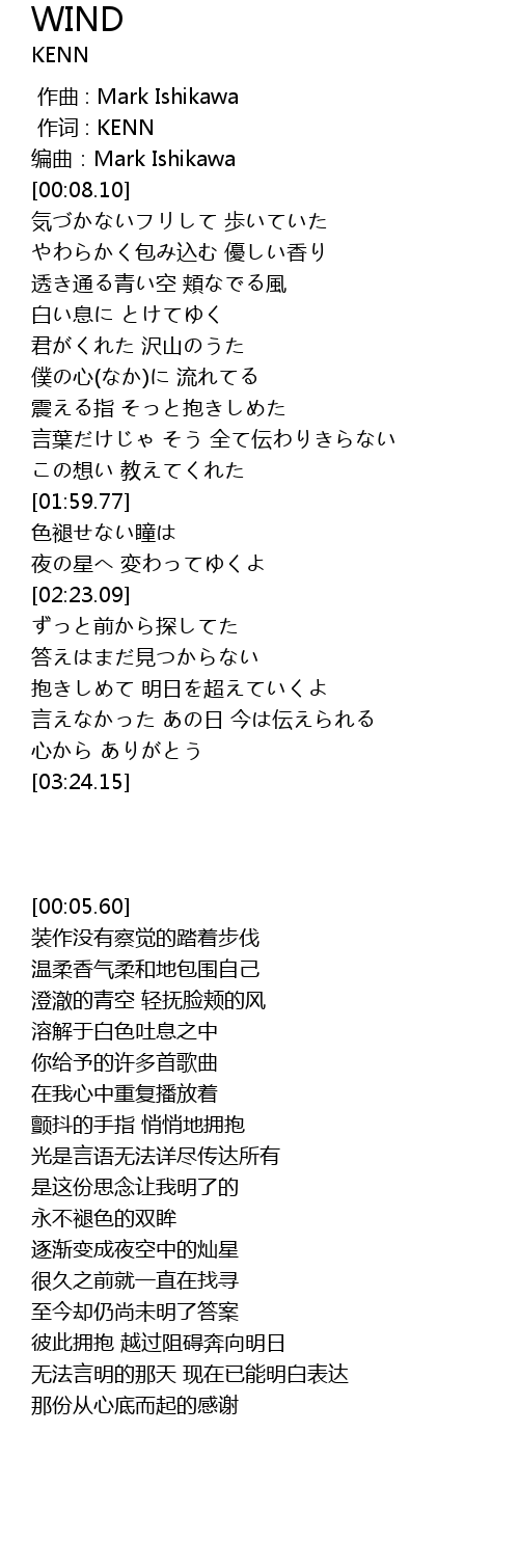 | [00:05.60] | 编曲:Mark Ishikawa |