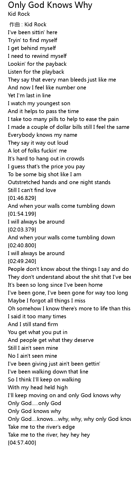 | [04:26.400] | Only God knows why |