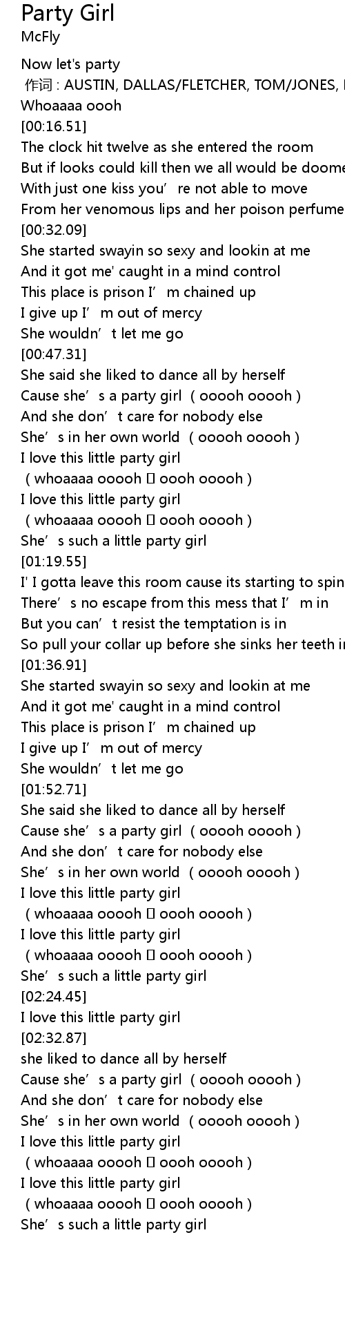 | [02:41.96] | Cause she’s a party girl (ooooh ooooh) |