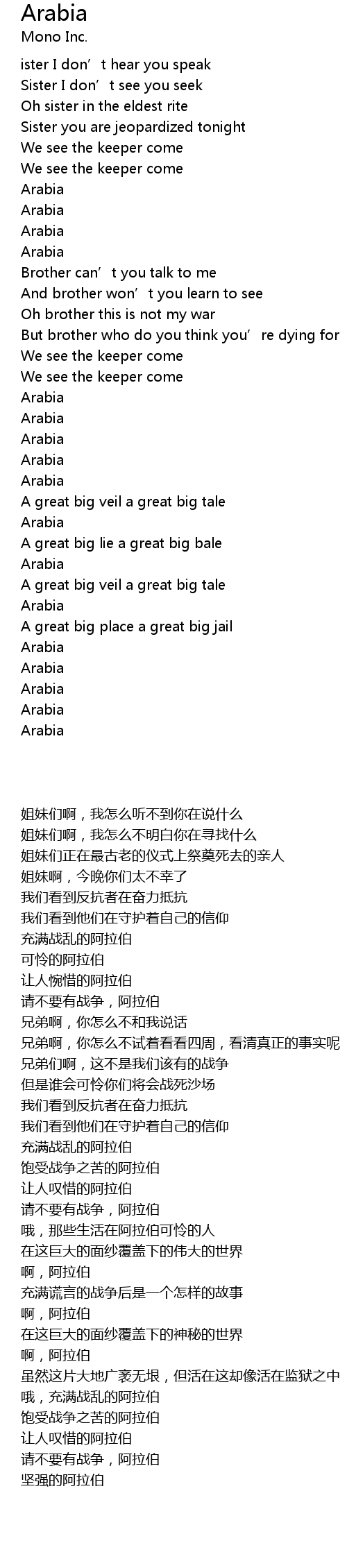 | [03:21] | 哦,充满战乱的阿拉伯 |