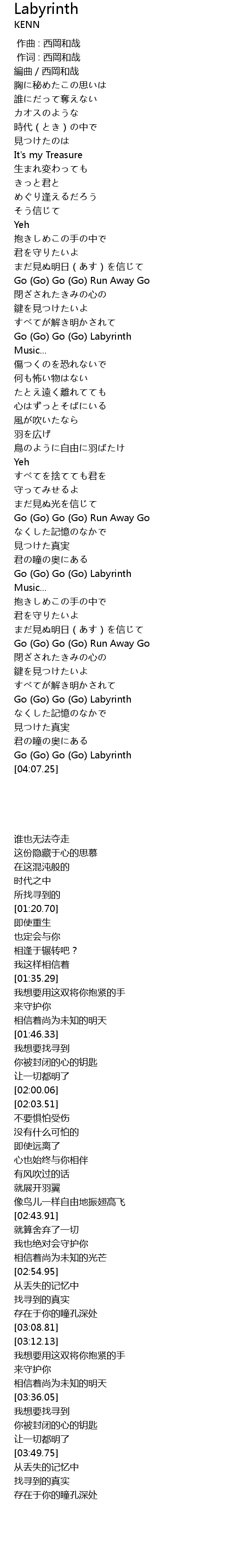 | [04:03.55] | Go Go Go Go Labyrinth |