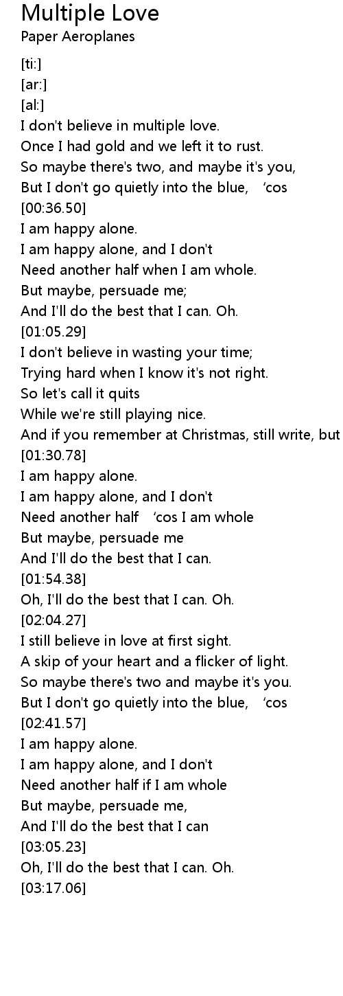 | [00:42.28] | I am happy alone, and I don' t |