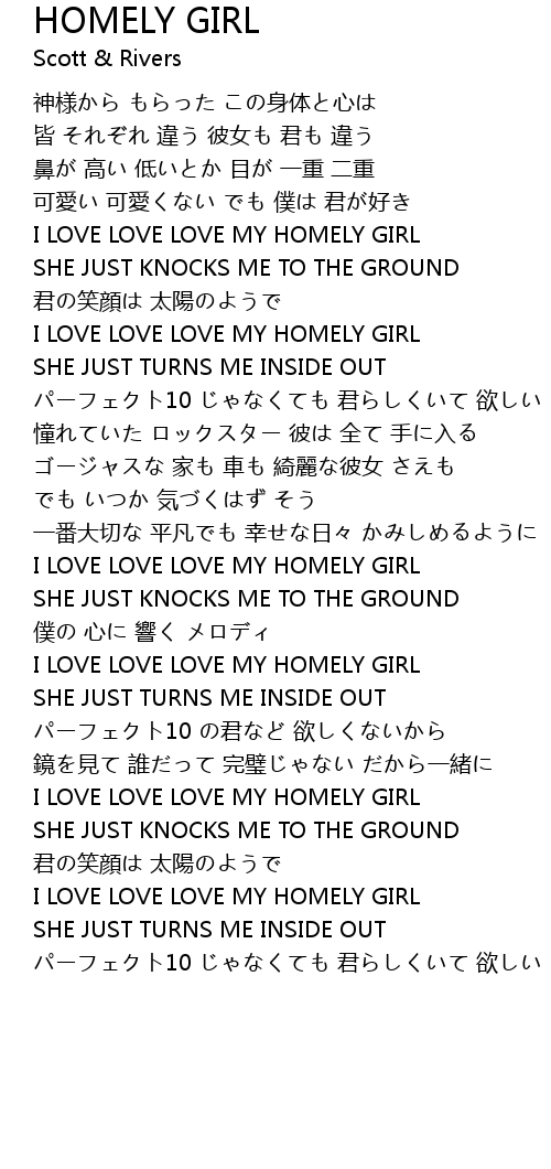 | I LOVE LOVE LOVE MY HOMELY GIRL | |