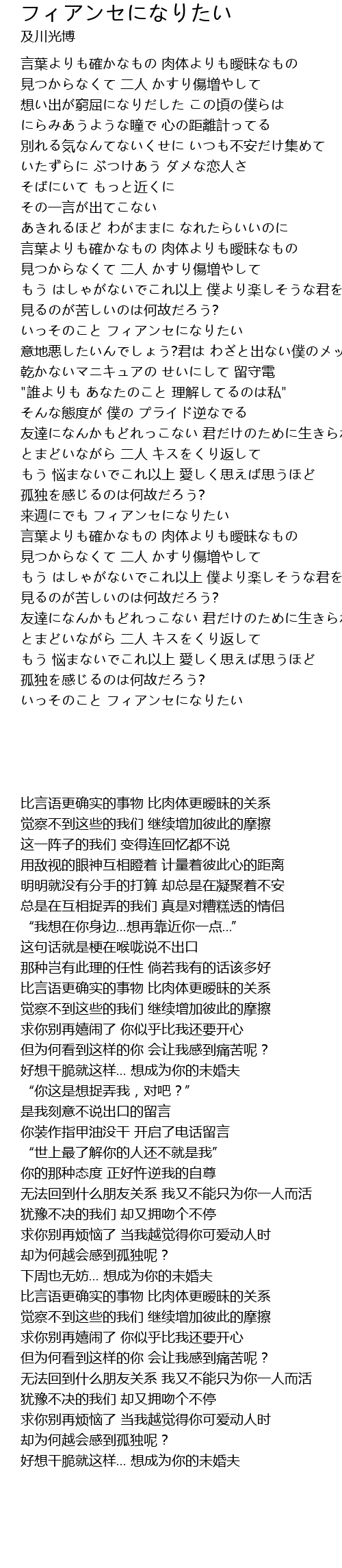 | [04:47.60] | 好想干脆就这样... 想成为你的未婚夫 |