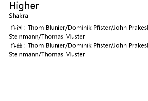 | [00:00.000] | 作曲 : Thom Blunier/Dominik Pfister/John Prakesh/Thomas Steinmann/Thomas Muster |