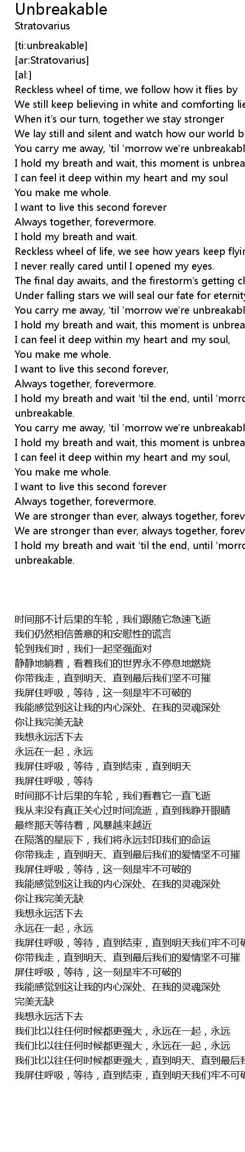 I hold my breath and wait 'til the end, until 'morrow we're unbreakable. |