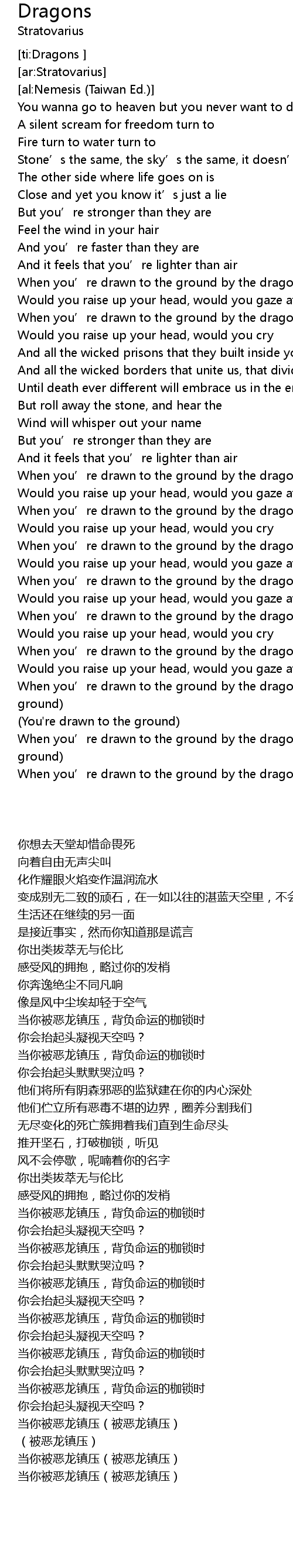 | [03:29.55] | When you’re drawn to the ground by the dragons (You're drawn to the ground) |