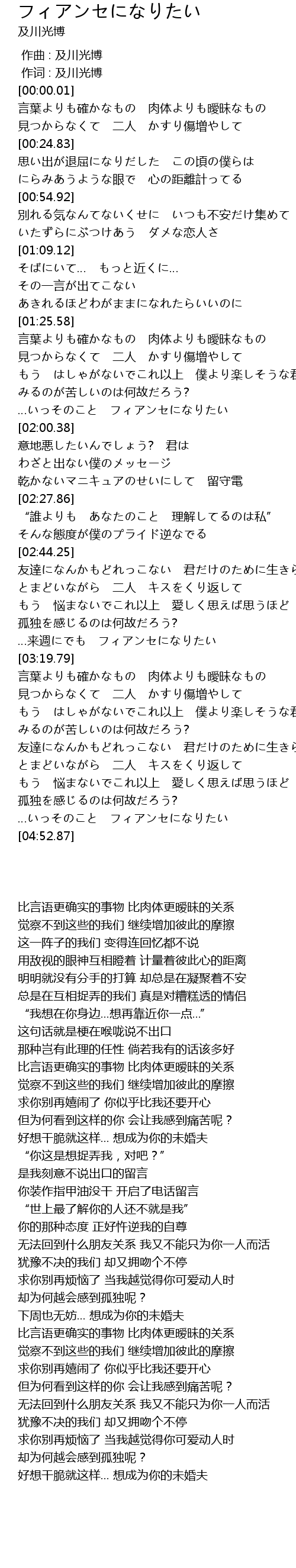 | [04:47.60] | 好想干脆就这样... 想成为你的未婚夫 |
