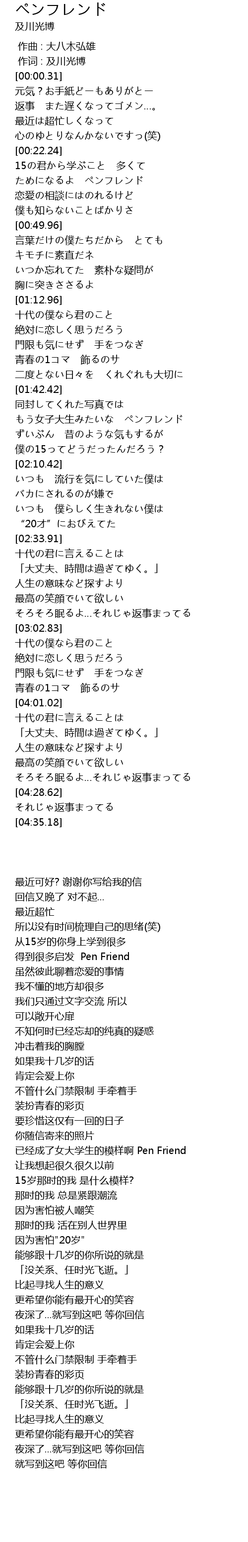| [01:56.90] | もう女子大生みたいな ペンフレンド |