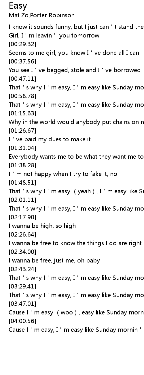| [01:03.89] | That's why I'm easy, I'm easy like Sunday mornin' |