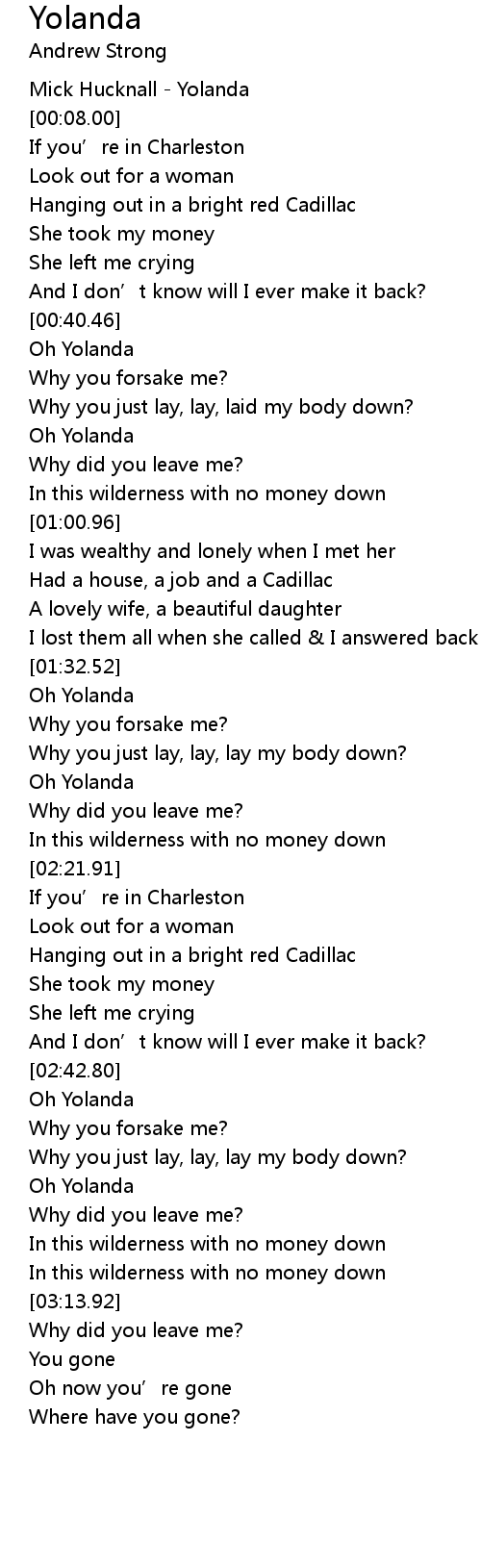 | [00:01.62] | Mick Hucknall - Yolanda |