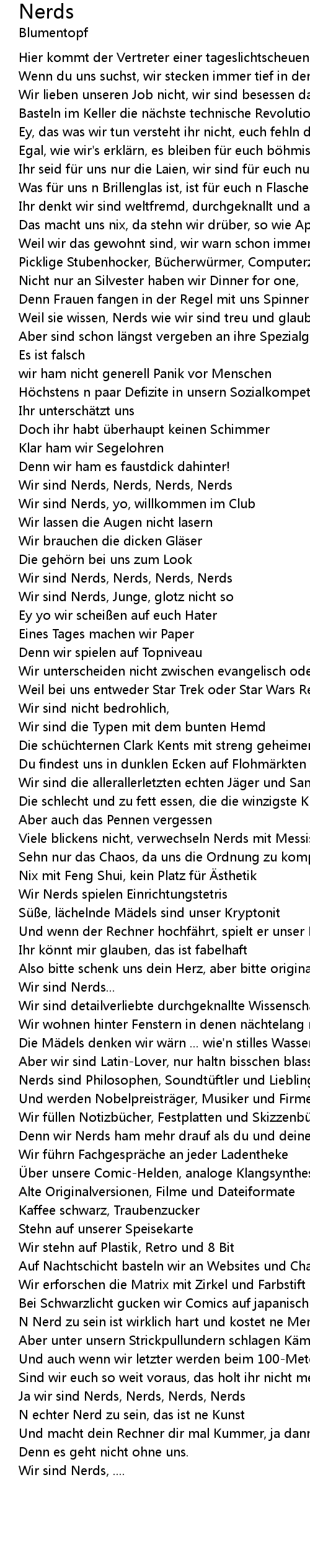 | Ja wir sind Nerds, Nerds, Nerds, Nerds | |