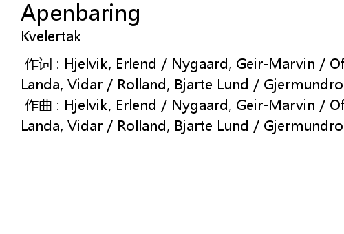 | [00:00.000] | 作曲 : Hjelvik, Erlend / Nygaard, Geir-Marvin / Ofstad, Maciek / Landa, Vidar / Rolland, Bjarte Lund / Gjermundroed, Kjetil Haugland |