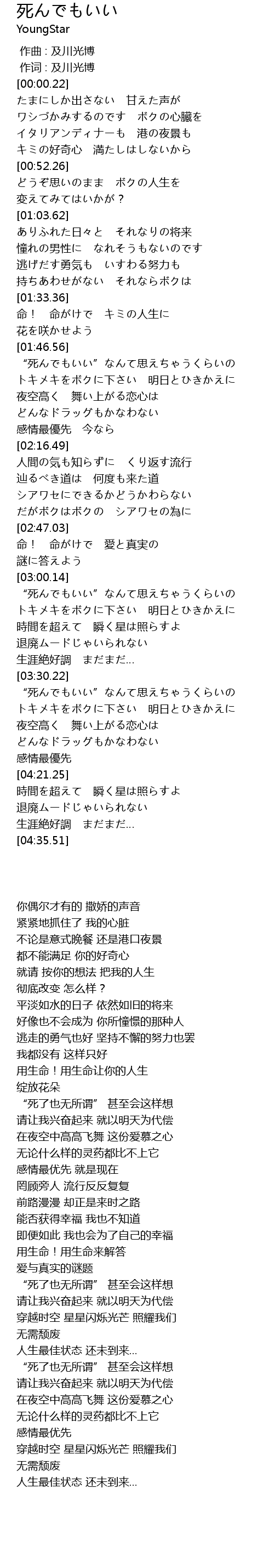 | [01:50.00] | “死んでもいい”なんて思えちゃうくらいの |