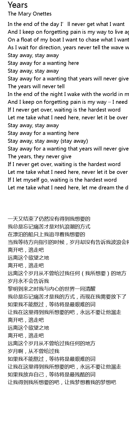 | [01:13.29] | Stay away for a wanting that years will never give |