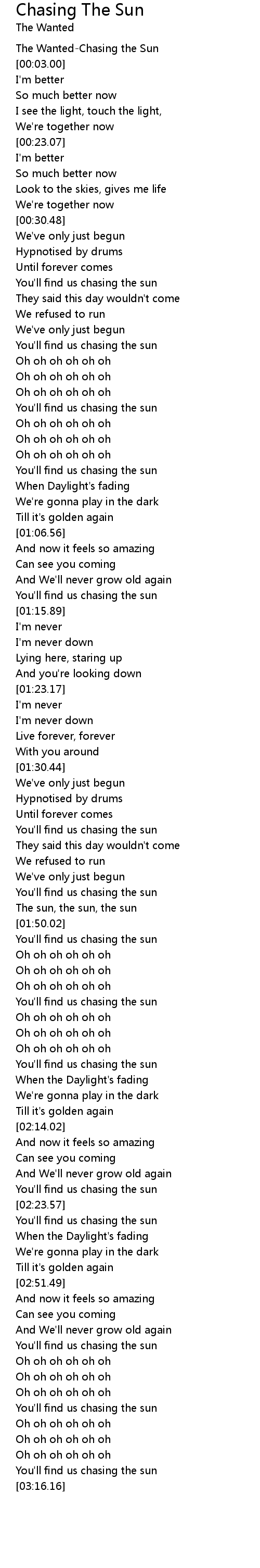 Chasing The Sun 歌词