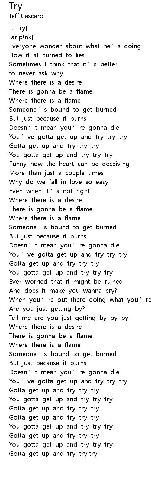 | [01:02.489] | You ' ve gotta get up and try try try |