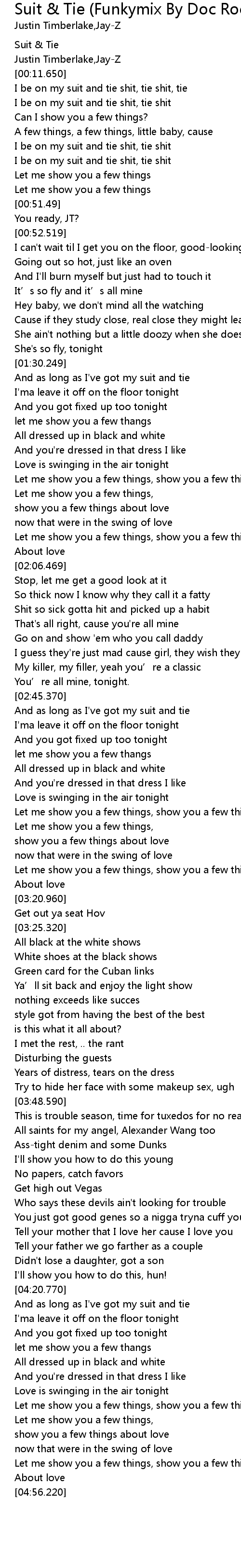 | [00:09.990] | Suit & Tie |