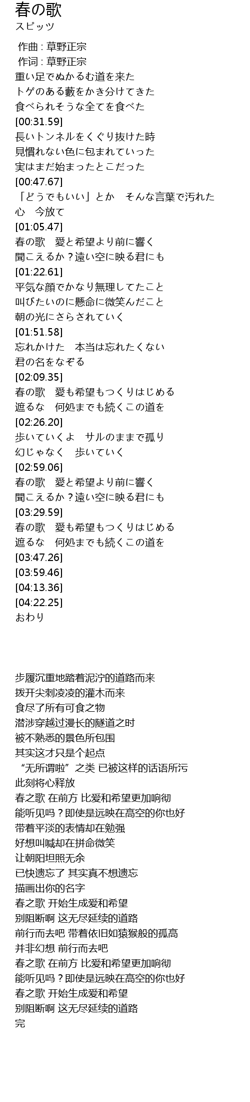 | [03:13.59] | 春の歌 愛と希望より前に響く |