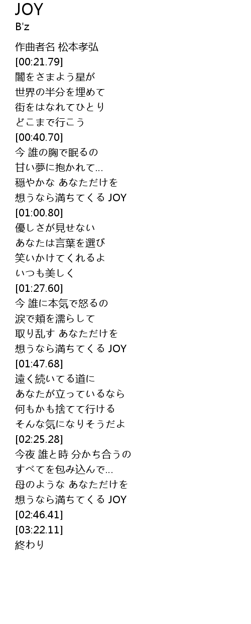 | [02:41.66] | 想うなら満ちてくる JOY |