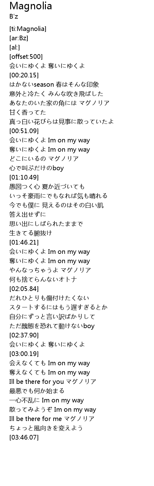 | [01:01.90] | どこにいるの マグノリア |