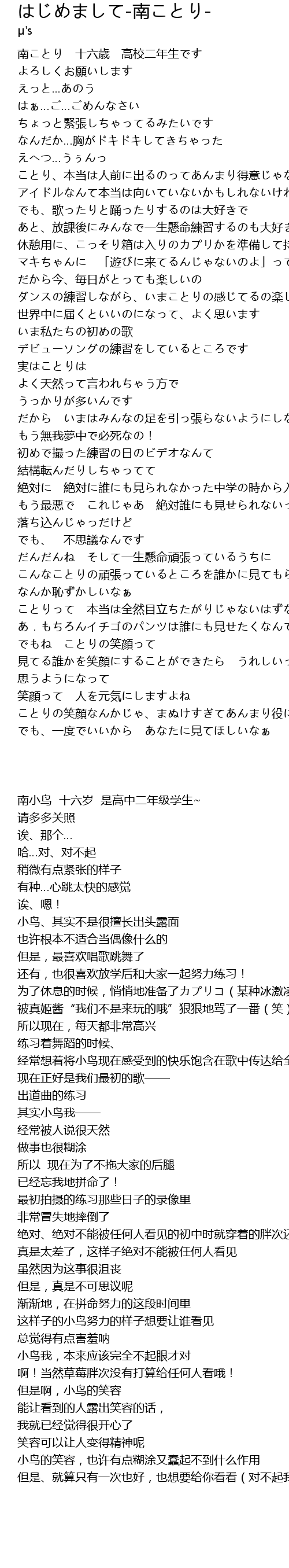 | [00:00.00] | 南ことり 十六歳 高校二年生です |