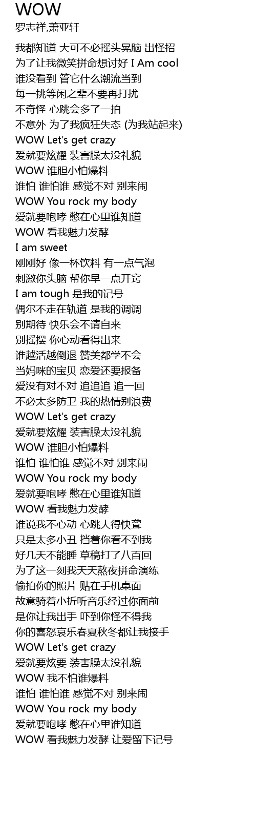 | [00:37.69] | WOW Let' s get crazy |