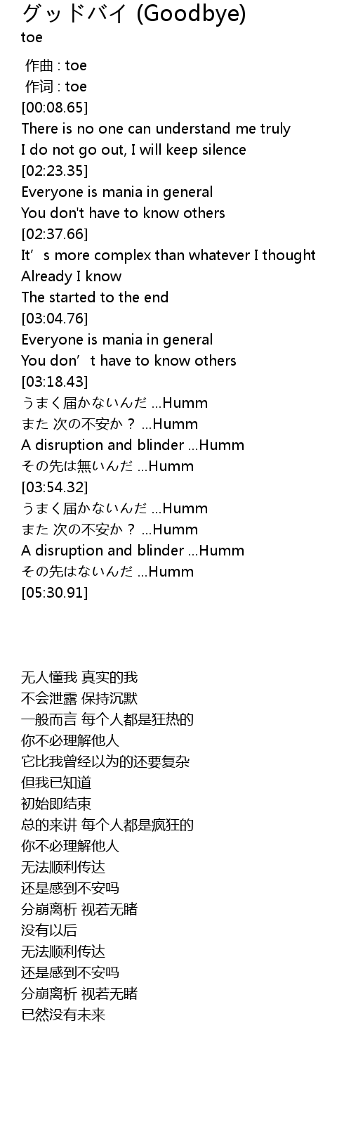 | [04:59.36] | うまく届かないんだ ...Humm |
