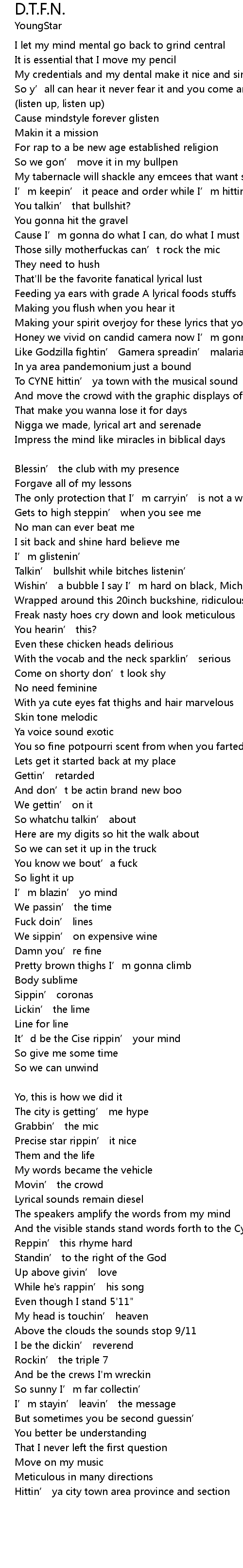| Fuck doin' lines | |