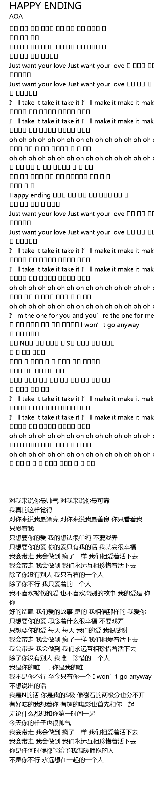 | [01:48.35] | Happy ending 결말이 좋아 우리 사랑 얘기가 그래 난 그럴 거라 믿어 널 사랑해 |