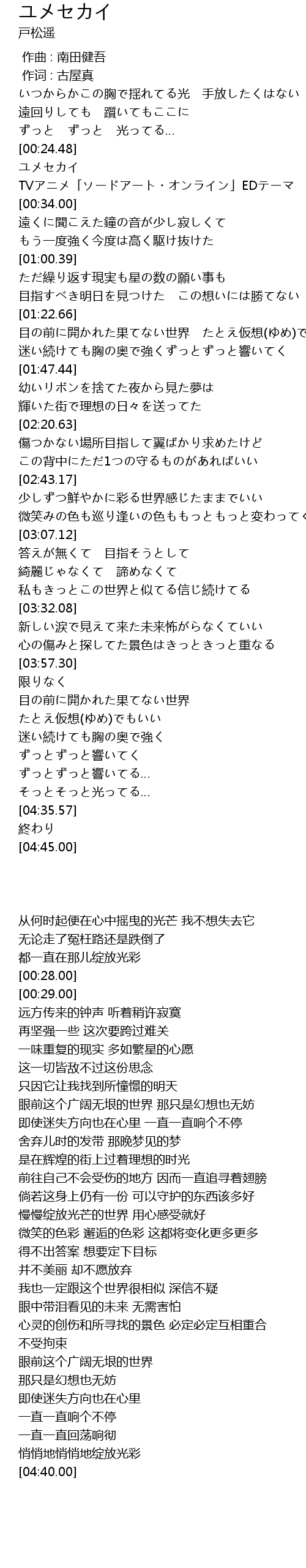 | [00:29.00] | TVアニメ「ソードアート・オンライン」EDテーマ |