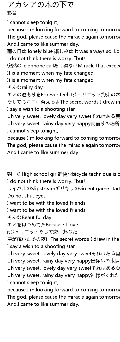 | Uh very sweet, rainy day very happy出逢いの木阴は、アカシアの木 | |